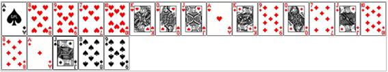 baralho do pôquer, formado pela retirada de todas as cartas inferiores a 7.